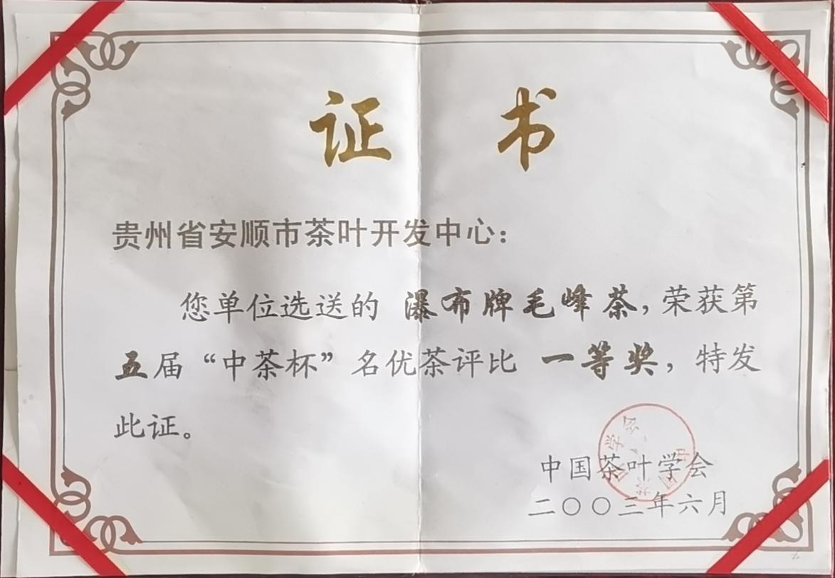 瀑布牌毛峰茶榮獲第五屆“中茶杯”名優(yōu)茶評比一等獎