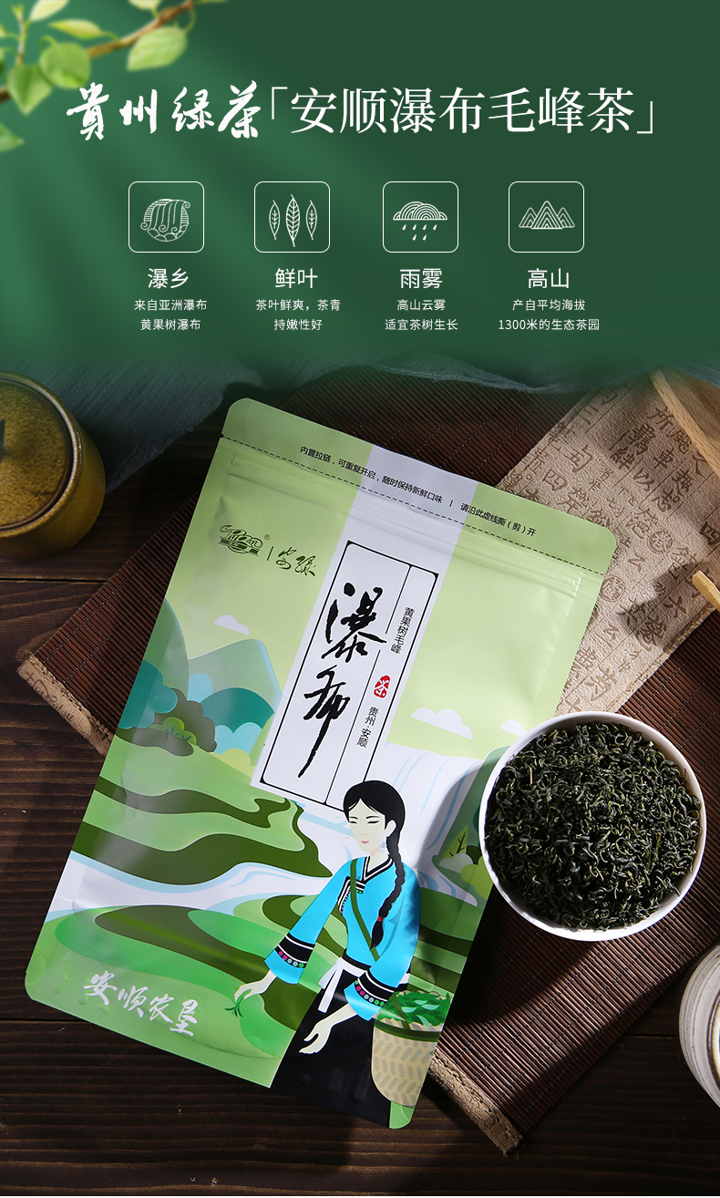 瀑布茶品牌是安順市人民政府主打茶葉品牌,省級(jí)重點(diǎn)打造區(qū)域公共品牌,屬貴州五大名茶,先后獲得獲“中國農(nóng)產(chǎn)品區(qū)域公用品牌”、“貴州省著名商標(biāo)”、“貴州省名牌產(chǎn)品”等榮譽(yù)稱號(hào)。近年來,在各級(jí)部門大力推動(dòng)下,瀑布茶品牌不斷發(fā)展壯大。截止目前,現(xiàn)有瀑布茶品牌加盟企業(yè)23家,輻射茶園面積200000余畝,其中綠色食品認(rèn)證茶園基地面積7000余畝,有機(jī)食品認(rèn)證基地面積2500畝。擁有“瀑布毛峰”、“瀑布翠芽”、“瀑布紅茶”、“瀑布翠龍”等產(chǎn)品,多次獲得“中綠杯”、“中茶杯”、“華茗杯”等大獎(jiǎng);分別榮獲第14屆中國國際農(nóng)產(chǎn)品交易會(huì)金獎(jiǎng)、第18屆中國綠色食品博覽會(huì)金獎(jiǎng)、“黃山杯”首屆全國傳統(tǒng)名茶產(chǎn)品質(zhì)量特別金獎(jiǎng)、安順十大旅游商品等殊榮及稱號(hào)。