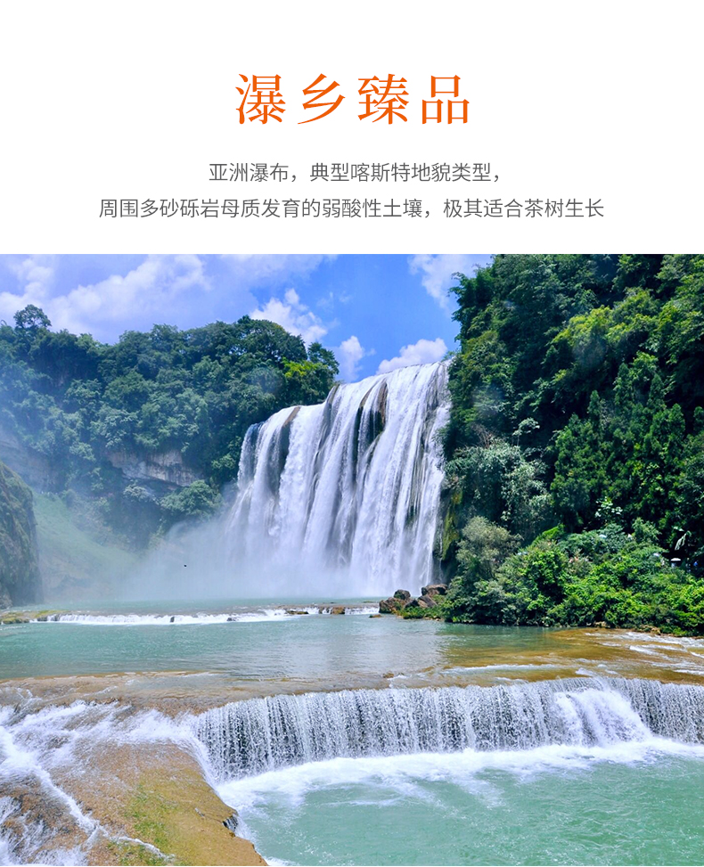 瀑布茶品牌是安順市人民政府主打茶葉品牌,省級重點打造區域公共品牌,屬貴州五大名茶,先后獲得獲“中國農產品區域公用品牌”、“貴州省著名商標”“貴州省名牌產品”等榮譽稱號近年來,在各級部門大力推動下,瀑布茶品牌不斷發展壯大。截止目前,現有瀑布茶品牌加盟企業23家,輻射茶園面積200000余畝其中綠色食品認證茶園基地面積7000余畝,有機食品認證基地面積2500畝擁有“瀑布毛峰”、“瀑布翠芽”“瀑布紅茶”、“瀑布翠龍”等產品,多次獲得“中綠杯”、“中茶杯”、“華茗杯”大獎;分別榮獲14屆中國國際農產品交易會金獎18屆中國綠色食品博覽會金獎“黃山杯”首屆全國傳統名茶產品質量特別金獎、安順十大旅游商品等殊榮及稱號。