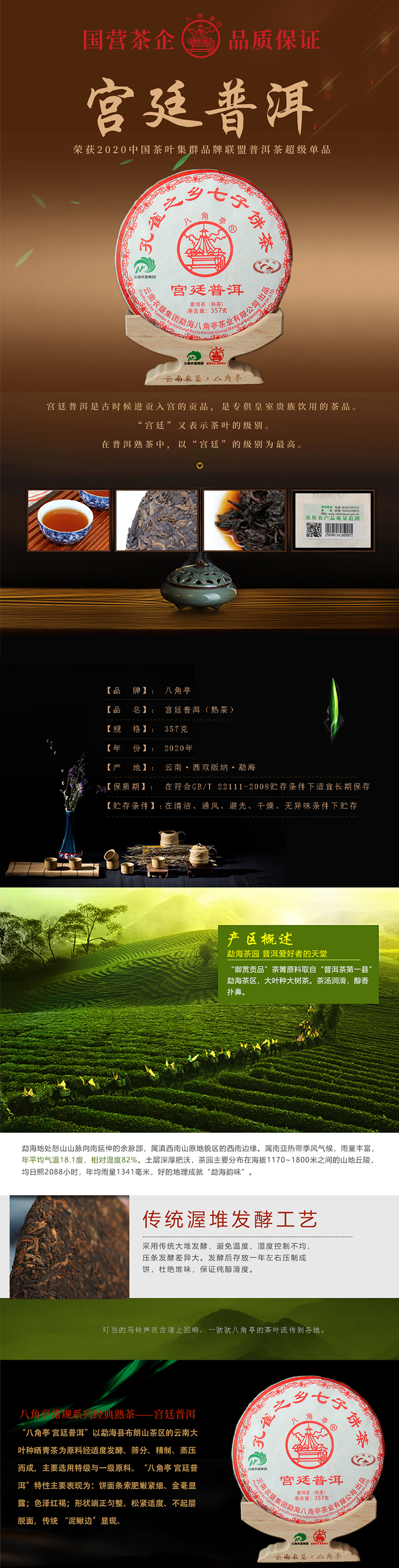 云墾茶業(yè)集團(tuán)下屬茶葉生產(chǎn)企業(yè)——云南農(nóng)墾集團(tuán)勐海八角亭茶業(yè)有限公司原名黎明茶廠,是我國歷史最為悠久的茶企之一,曾位列“中國普洱茶十大知名品牌”“十大最受歡迎茶葉品牌”、“中國普洱茶十大暢銷品牌”中,成為今天市場上最有影響力的品牌之一。公司產(chǎn)品獲得“綠色食品”、ISO9001、 HACCP和云茶品牌(YC)4項(xiàng)認(rèn)證,連續(xù)獲得“云南名牌農(nóng)產(chǎn)品”“云南名牌產(chǎn)品”“云南省著名商標(biāo)”等品牌榮譽(yù),公司生產(chǎn)的多款普洱茶在歷次專業(yè)評比中多次獲得特等金獎和金獎。在2018第五屆中國企業(yè)五星品牌論壇上,云南農(nóng)墾集團(tuán)勐海八角亭茶業(yè)有限公司上榜中國普洱茶行業(yè)影響力品牌——“金芽獎”,公司負(fù)責(zé)人陳勝軍先生獲“陸羽獎”,被授予2017“國際十大杰出茶人”榮譽(yù)稱號。