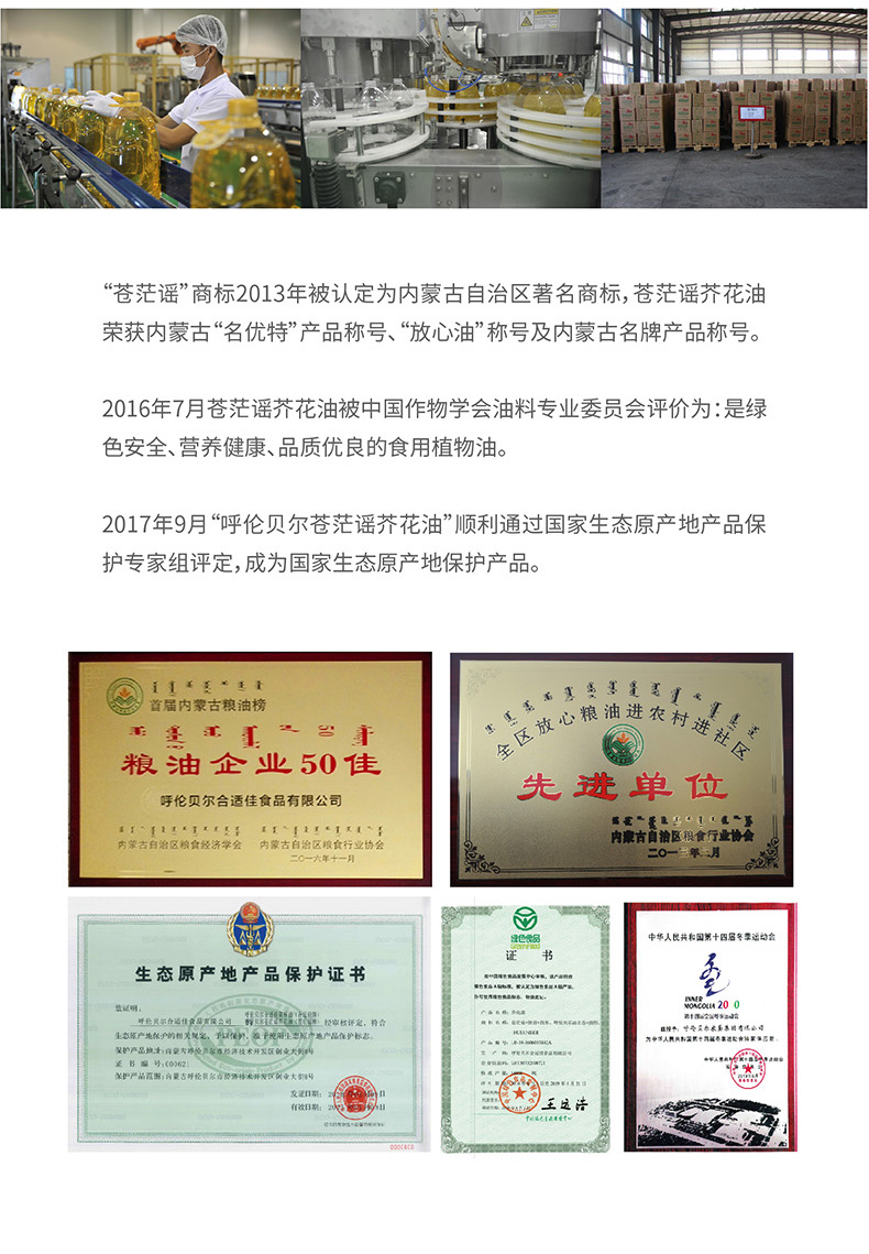 呼倫貝爾農(nóng)墾出品蒼茫謠芥花油非轉(zhuǎn)基因食用油500ml*6